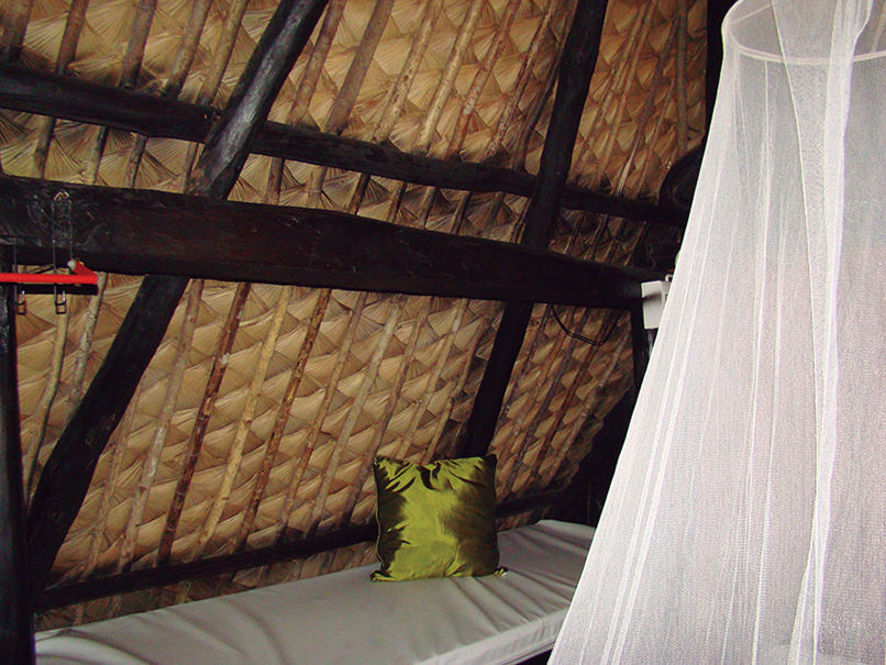竹で骨組みを作り、ヤシの一種であるニッパの葉で屋根を作ったシンプルな高床様式ですが、窓部分を大きくとったオープンタイプと、竹を割いて編みこんだ壁で覆われたベッドルームタイプがありました。