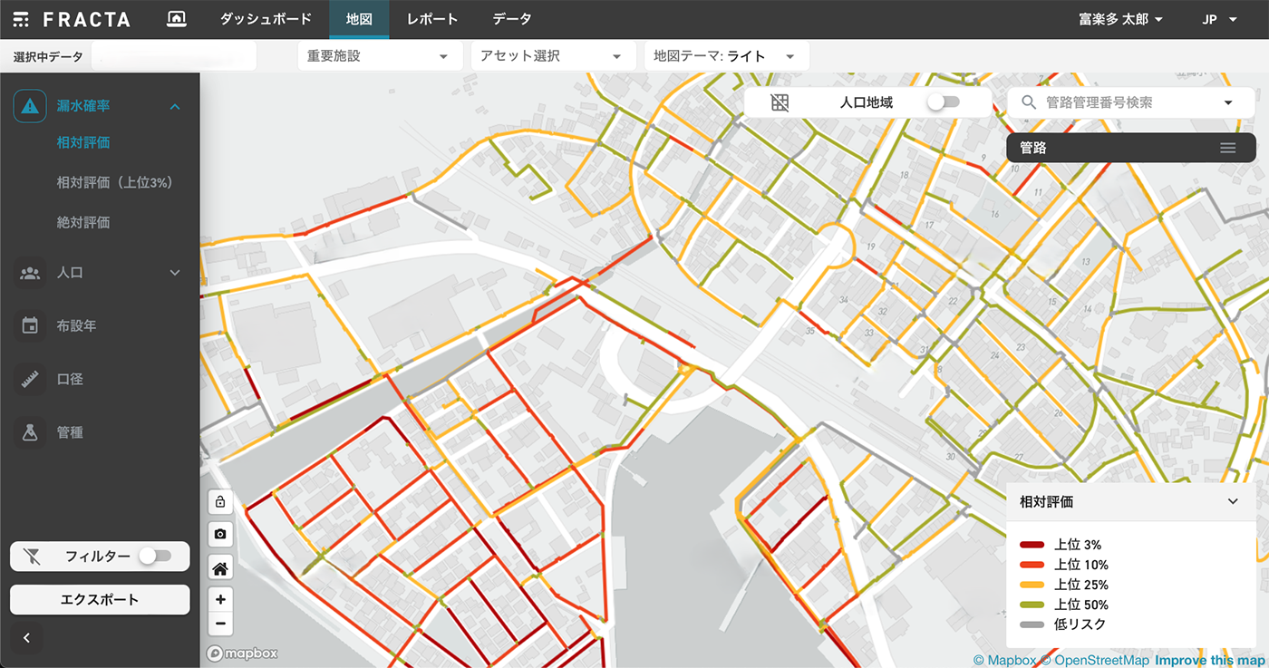 「これまでの更新基準は水道管の耐用年数でした。ですが、周辺環境によっては何年経っても使い続けられる管もあるし、逆に耐用年数よりも早く駄目になる管もある。つまり、古さだけを基準にするのでは不十分で、多角的にリスクを把握し、実態に即して更新の優先順位を決める必要があります」。