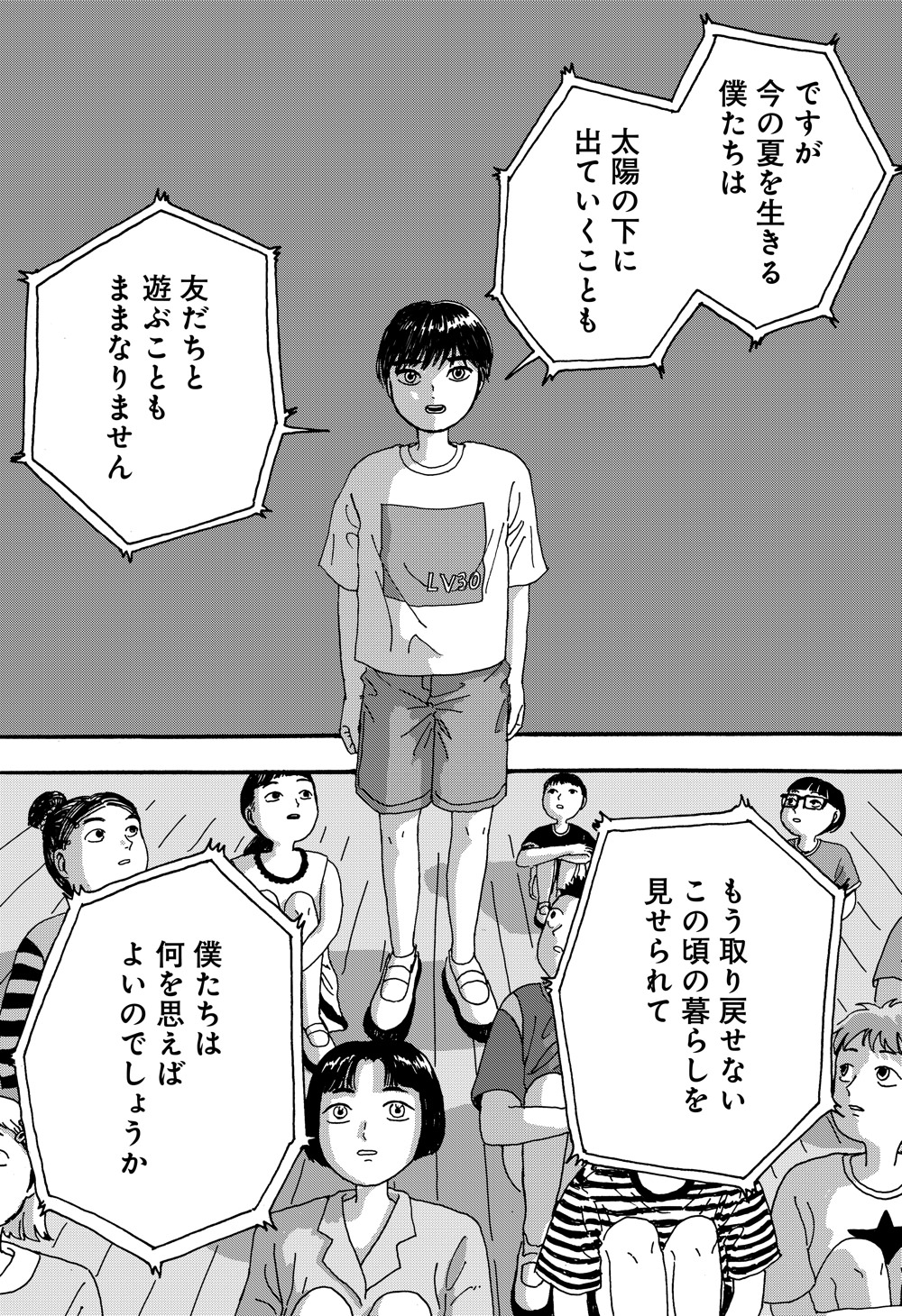 「夏といえば、外で遊んだりプールに行ったり。私は、それがギリギリ楽しくできた世代でした。でも今の子どもたちは昔みたいに外で遊べません。だから楽しい夏だけじゃなく、"悪くなった夏"も描かなきゃ自分の中で整合性が取れないと思いました。それに、誰がどう見ても絶望的だと思える気候変動の話なら、どんな思想や立場の人にも読んでもらえるんじゃないかな、と」。
