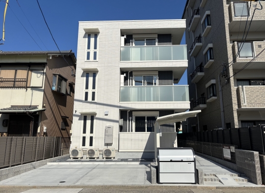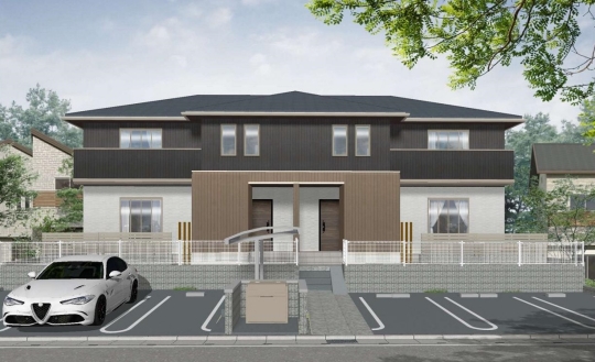 重層長屋タイプの賃貸住宅です。Nearly ZEH-M仕様を採用しており、太陽光パネルで発電した電気はご入居者が利用できます。また、ガス衣類乾燥機「乾太くん」を全戸に採用した仕様としてます。1階の玄関土間・テラスはゆとりを持った設計をし、それぞれにご入居者のフリースペースを設けて差異化を図ってます。