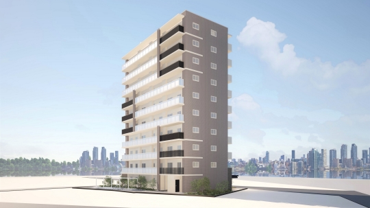 Nearly ZEH-M仕様、独立エントランス、共用エレベーターを備えた、外観にこだわった会場です。1LDKと2LDKの間取りで、単身世帯やカップル等に幅広く対応できます。また2LDK世帯にはテレワークスペースを備えてます。