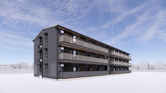 また、洗練された外観デザインの都市型3階建賃貸住宅です。1R~2LDKの多様なプランが完成しました。