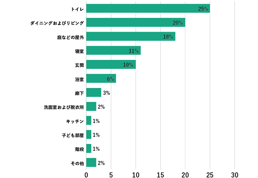 最多は「トイレ」(25%)でした。「壁に囲まれ家具もないから安全」という通説を耳にしますが、実際はタンクの破損やドアの変形で閉じ込められる可能性もあります。