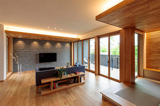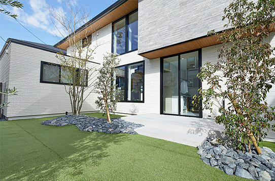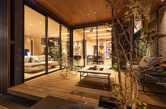 ②リビングかつながるウッドデッキや、植栽豊かな庭を設ける