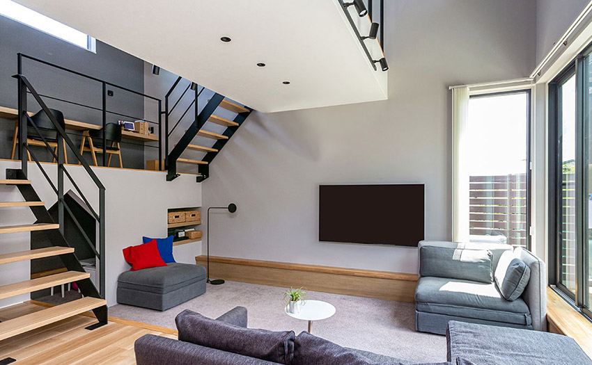 - 2階建ては吹き抜けやスキップフロアなどを活用し、共有空間と個室を分けた間取りをつくりやすい