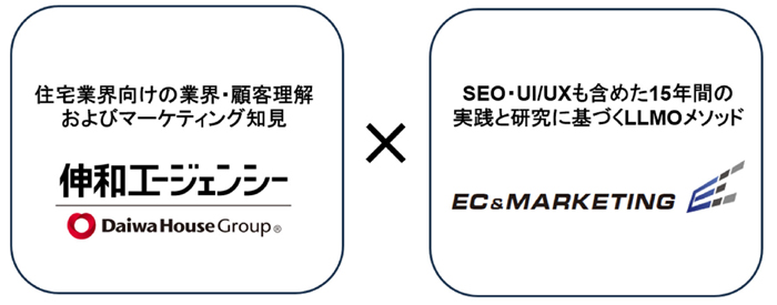 大和ハウスグループの株式会社伸和エージェンシー(大阪府大阪市、代表取締役社長:大仁 公一、以下「伸和エージェンシー」)とECマーケティング株式会社(東京都港区、代表取締役:中山 高志、以下「ECマーケティング」)は、伸和エージェンシーによる住宅業界向けの業界・顧客理解およびマーケティングの知見と、ECマーケティングによるSEO(※1)・UI/UX(※2)も含めた15年間の実践と研究に基づくLLMO(※3)メソッドを掛け合わせた、住宅業界向け生成AI時代のマーケティング診断・改善コンサルティングサービス「生成AI対策/LLMO弱点あぶり出し調査」を2026年1月15日より開始します。