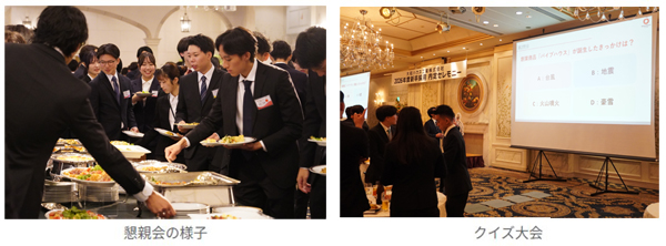 内定通知書の授与後、会場で懇親会が行われました。内定式が始まる前は緊張して肩に力が入っていた内定者が多く見られましたが、内定者同士の歓談を通じて徐々に笑顔が広がり、会場は和やかな雰囲気に包まれました。