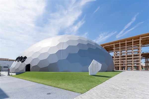 クラゲの傘のような膜屋根は、地上エリア中央の 「創造の木」の幹ではなく、斜めの柱で支えており、その特徴的な構造が、多くの関心を集めました。