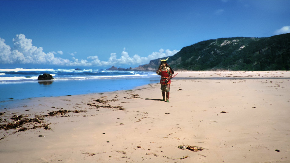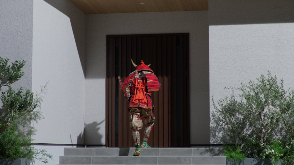 真夏の太陽の光の下、砂浜を歩く甲冑をまとった男。スマホ越しに誰かと会話している。「いったい、この暑さはいつまで」そして、「もう耐えられない」と夏の暑さについて、男が語っている。その男が向かったのは、とある一軒の家。