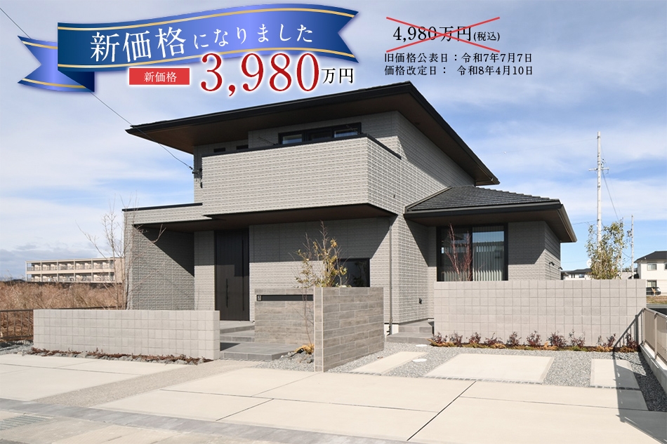 1. 1販売価格を改定いたしました。4,980万円→3,980万円