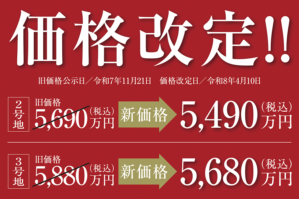 - 3長期保証(構造耐力上主要な部分30年、雨水の浸入を防止する部分30年です)充実のアフターサービス!