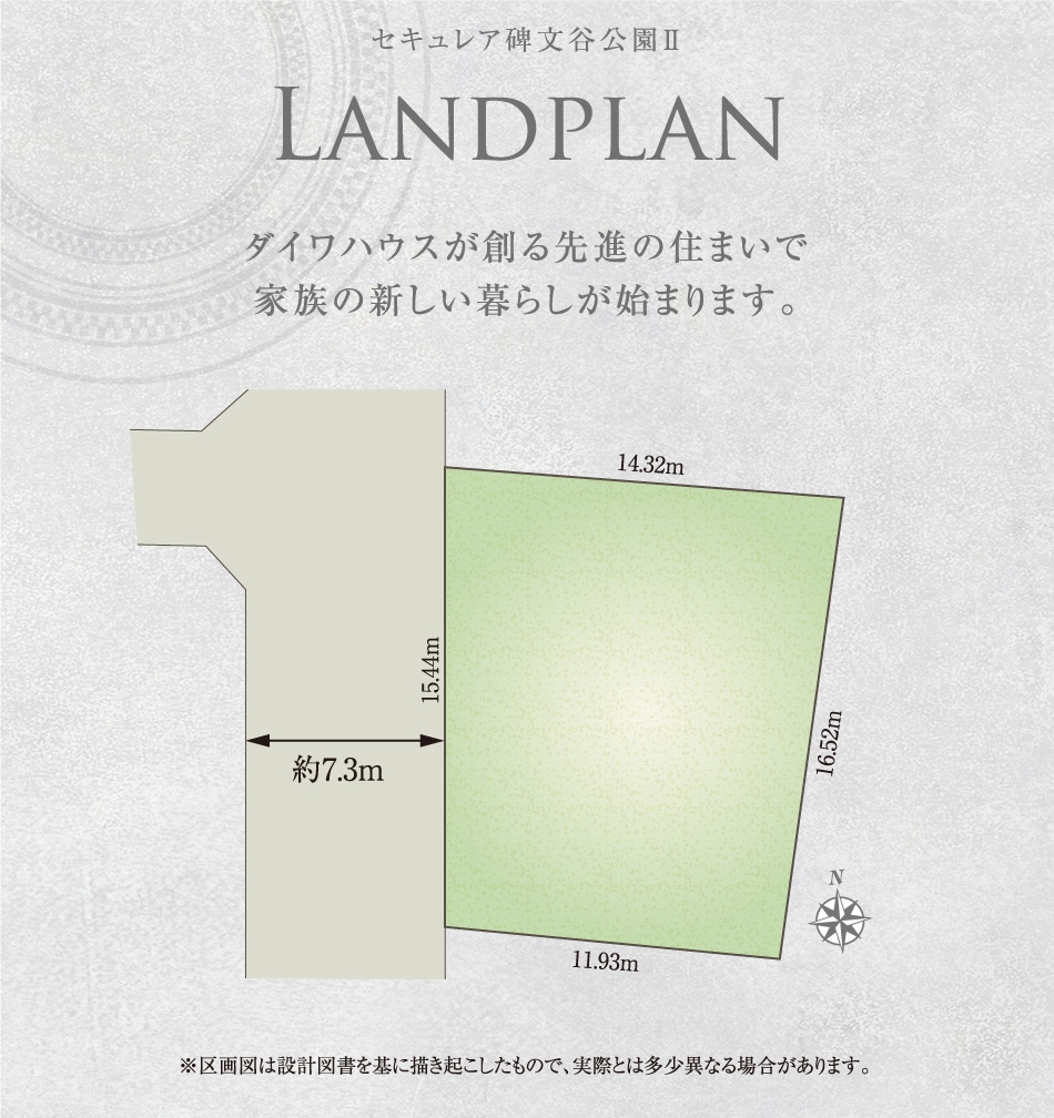 - 3多彩なプランを描ける約65坪の敷地。前面道路7.3mで駐車も快適。