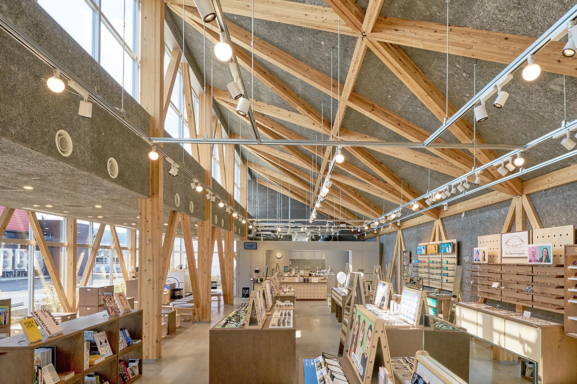 山形県産の木材を用い、山形の伝統工芸「組木」をモチーフに柱や梁を構成。木のぬくもりが感じられ、ゆったりとした居心地の良い空間を目指しました。店舗正面に高窓を設けて全面ガラス張りにすることで、店内を自然光のやわらかな明るさで満たしています。また、地域の人々とのつながりを大切にしたいという想いから、店内に広々としたギャラリースペースを設置。店内のグラフィックや待合ベンチには、地元の東北芸術工科大学の学生による作品を採用しています。