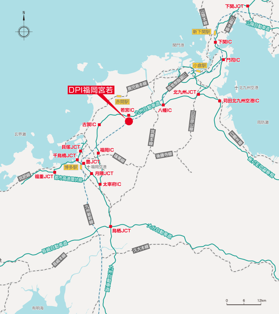 北九州から福岡、熊本、宮崎、鹿児島まで続く九州自動車道により、九州全域を効率的にカバー。
