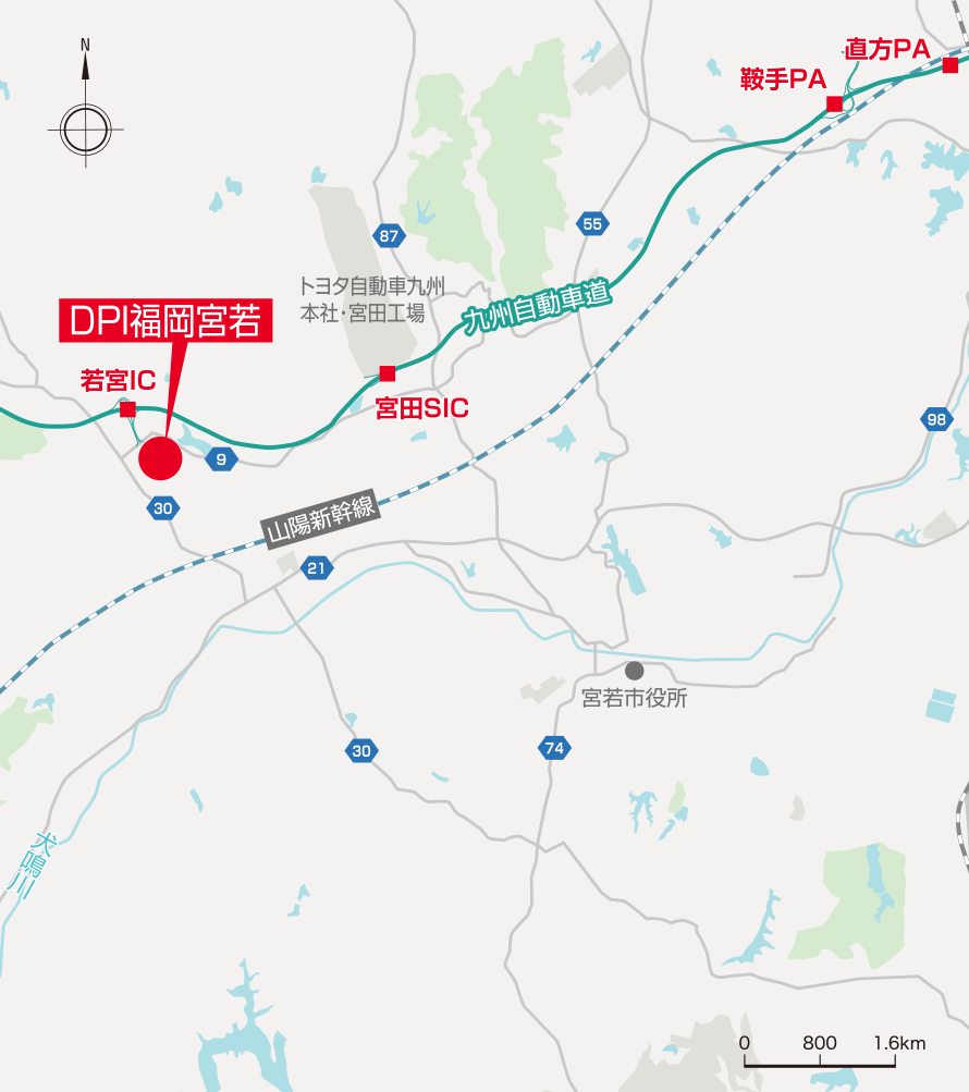 「若宮IC」より0.3kmという近さを活かし、広域配送や広域調達の拠点構築が可能です。