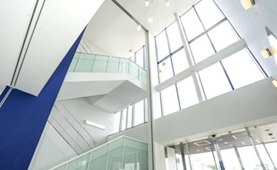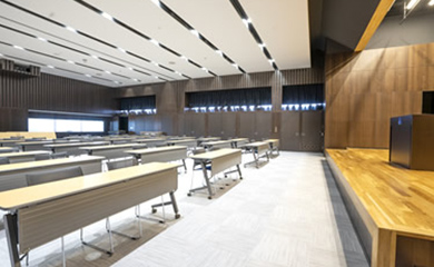 - 既存施設では、研修や講演を行うホールが4階にあり、終了後などには多くの参加者が1基のエレベーターに集中することが多く、不便を生じていました。そこで新会館では、同規模のホール(最大約300名収容)を2階に配置。気軽に階段が利用できるため、スムーズな催事運営が行えます。