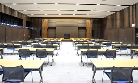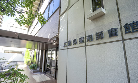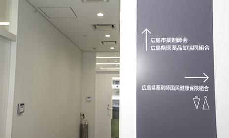 3階建ての建物は、1階に会営の薬局と広島県薬剤師会の事務局、2階は、多目的ホールと会議室、3階は関係団体の事務局がテナントとして入居しています。