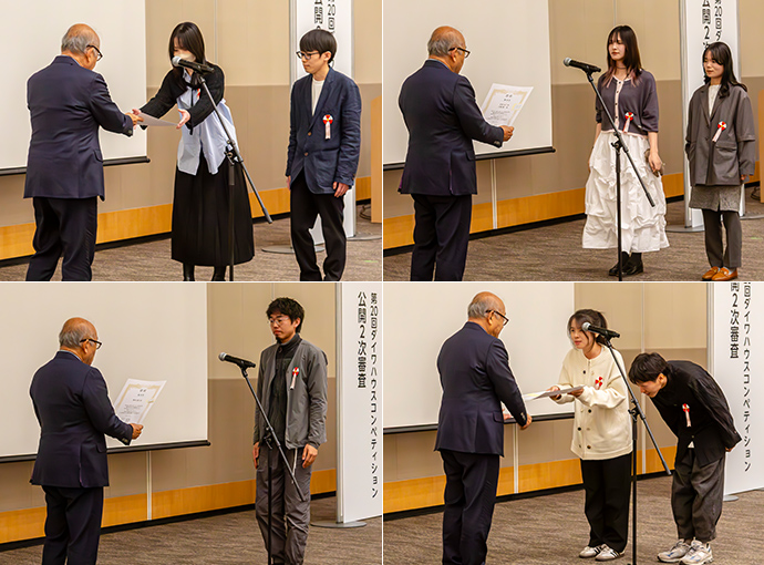 大和ハウス工業賞は、1次審査通過7作品の中から、公開2次審査のプレゼンテーションと質疑応答を通して、審査委員とは独立したかたちで大和ハウス工業が1作品を選出する賞です。