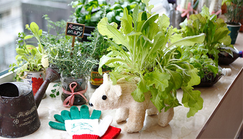 イエナカ菜園の野菜たちは、見ていて楽しくなるくらいスクスク育ちます。活用法もいろいろ。サラダやサンドイッチはもちろん、スムージーの材料にもぴったりです。包丁を使わなくても、サッと指先でつまんで必要な分だけ収穫できるので、スープやパスタなど料理の彩りなどにも、どんどん使ってみましょう。ほんのちょっぴりグリーンを添えるだけで、いつもの食卓がおしゃれにグレードアップするはずです。
