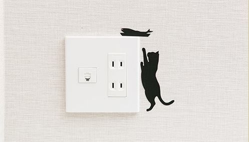 スイッチのまわりなど、よく目につくところには小さなステッカーで遊び心をプラス。見るたびに心がなごむ、世界にひとつの物語が生まれます。小島さんはドアや廊下など、ちょっとした空間にいろいろなステッカーを貼って楽しんでいるそう。