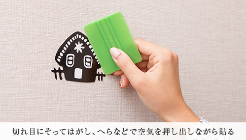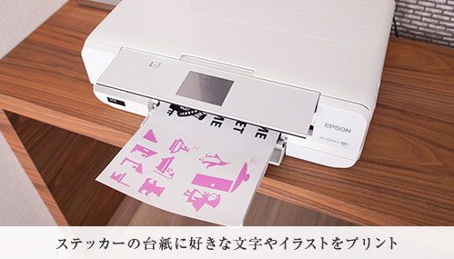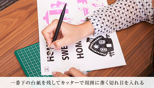 ウォールステッカーは、自分だけのオリジナルも簡単につくることができます。ステッカー用の台紙に好きな文字やイラストをプリントし、その上に保護シールを貼るだけ。使うときにはがしやすいよう、一番下の台紙を残すように注意してカッターで周囲に薄く切れ目を入れれば完成です。台紙と保護シールがセットになった専用キットもあります。