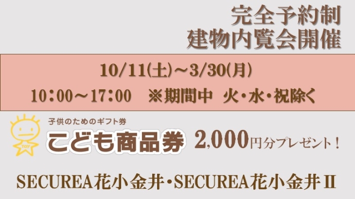 【東京西支店第二住宅】10月〜3月こども商品券イベント(セキュレア花小金井・セキュレア花小金井U)