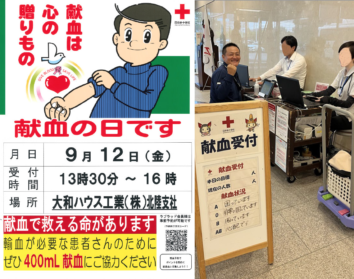 2025年9月12日(金)、金沢ビルにて献血を実施しました。当取組みは日本赤十字社様のご協力のもと定期的に実施しています。