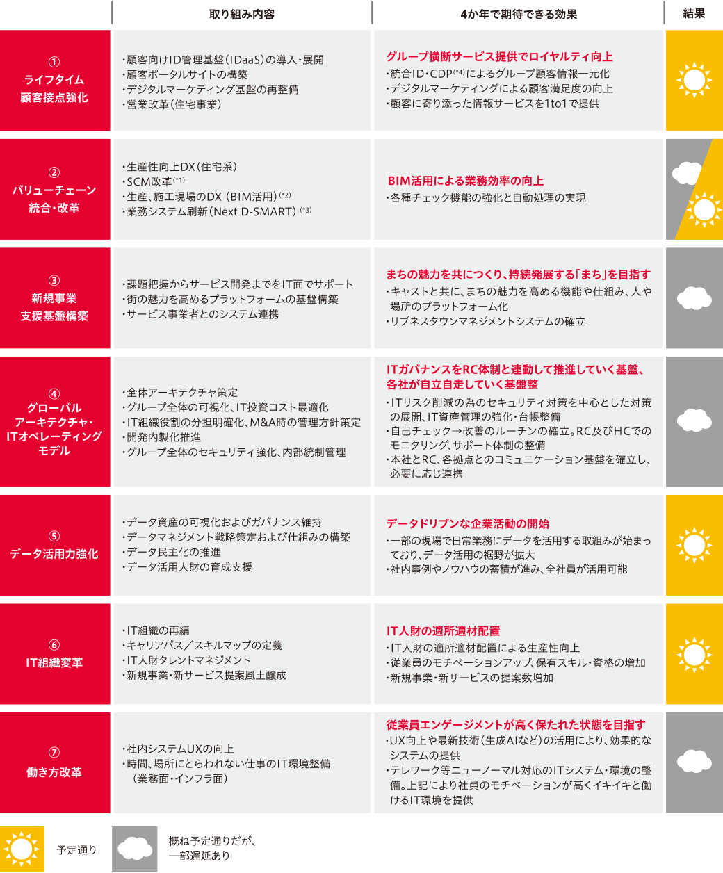デジタル戦略部においても、中長期的な観点をふまえ、第7次中期経営計画に連動して5ヵ年の「第7次IT中期計画」を設定しましたが、当該計画の期間短縮にともない、4年間に変更しています。(図1)