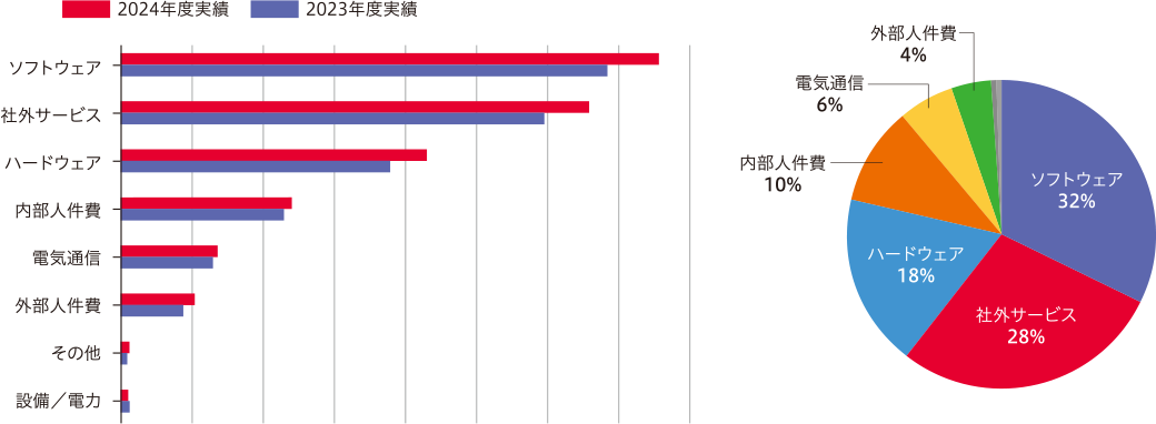 デジタル戦略部では、第7次IT中期計画の施策の一つとして、IT投資の最適化を目指し、ITコストの可視化に取り組んでいます。これまでは利用部門にとって、「負担しているITコストが適正かどうかわからない」「IT投資を積極的に進めてよいのか判断できない」といった課題がありました。そこで、利用部門に対してデータに基づいた説明を行うために、ITコスト全体の可視化とITコスト構造の可視化を進めています。また、データ分析を活用してITコストの合理化・最適化を図り、運用費の継続的な削減と新規開発投資の最適化を実現します。