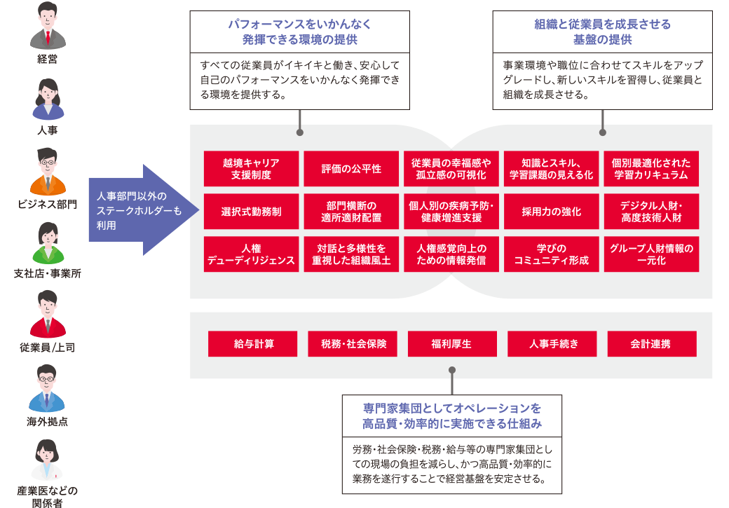 また、従業員のキャリア自律支援、適所適財の人的資本活用、自分らしさを発揮して仕事に打ち込める組織文化の創出などについても、最新のデジタル技術を駆使して実現させていきます。