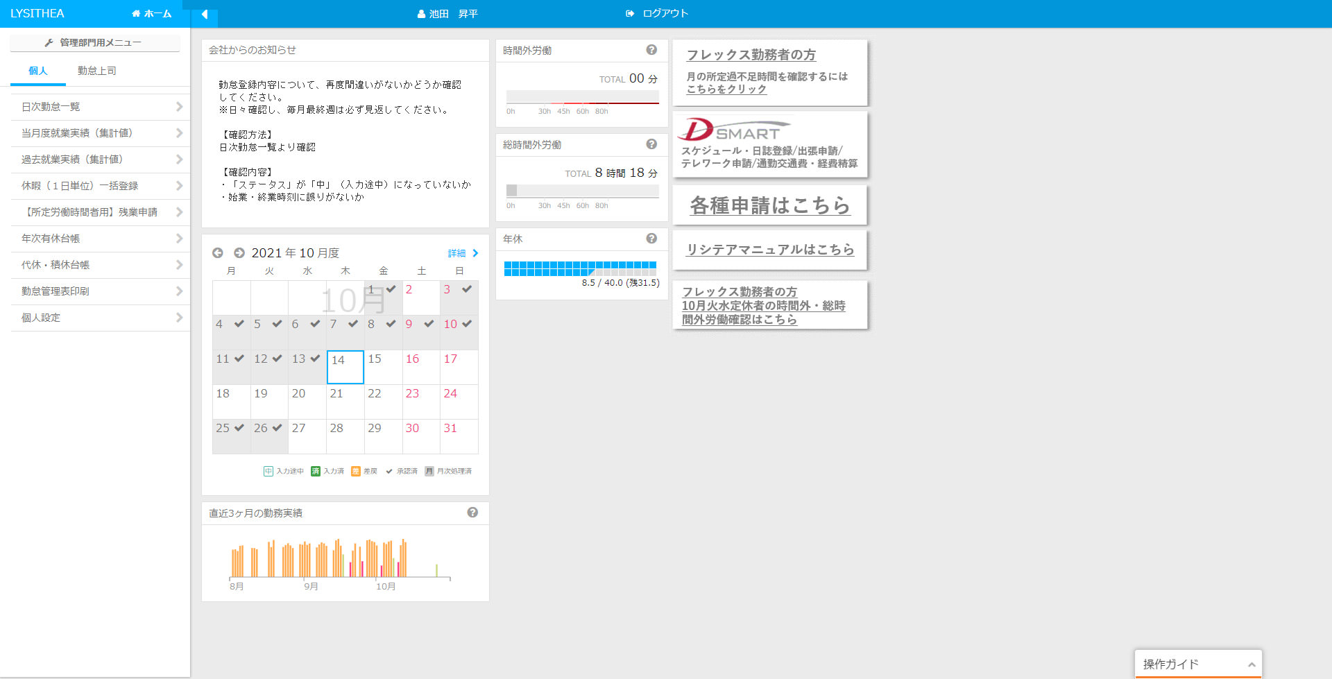 図2:フレックス勤務を支える勤怠管理システム