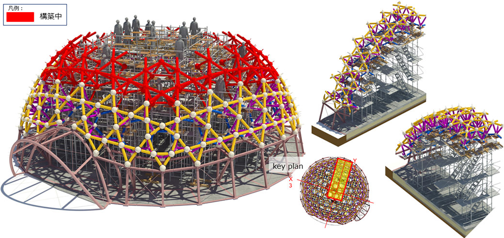 施工現場では、球体構造という極めて複雑な形状に対応するため、精度の高い品質管理が求められました。