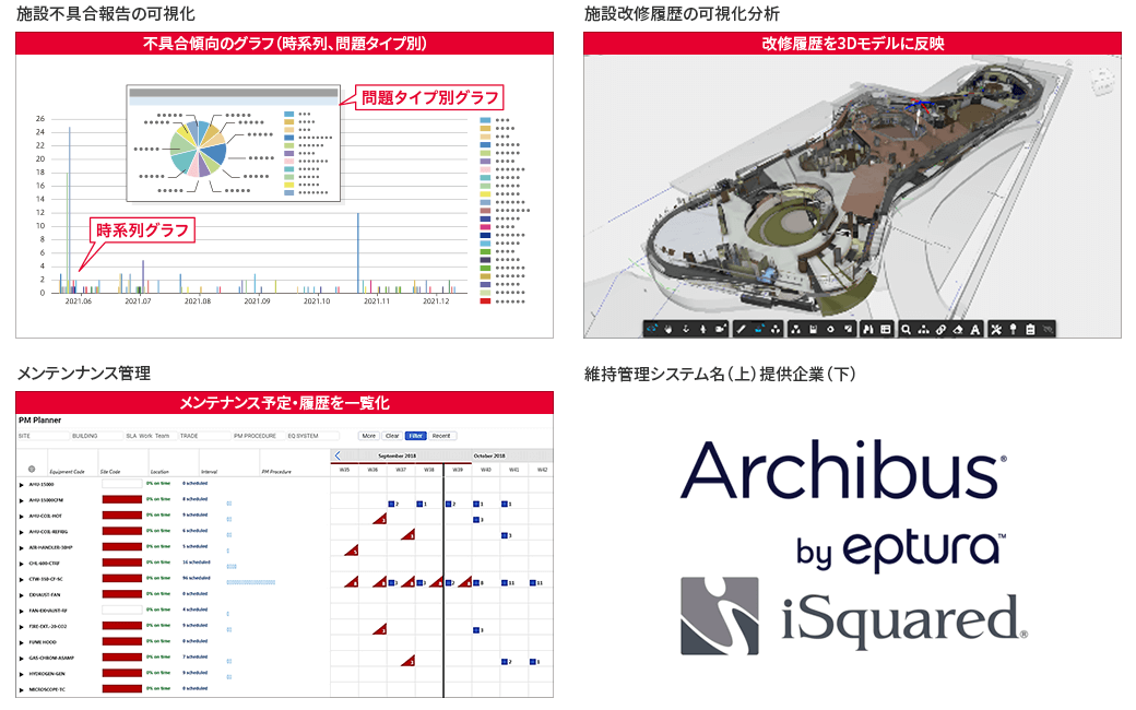 (*1)BIM-FMシステム:建物の設計と施工段階で入力された3次元情報と属性情報を引き継いで、施設運営に役立てるシステム