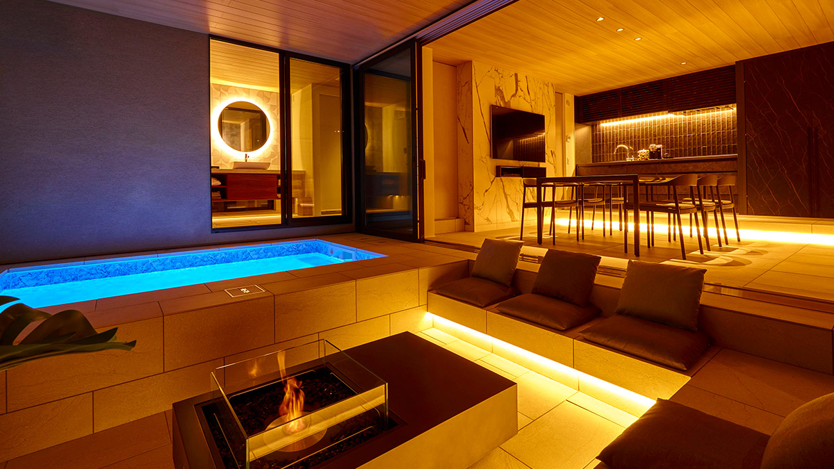 • プールテラス:火と水と光が整える、離れの時間。