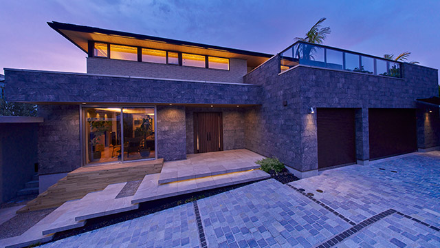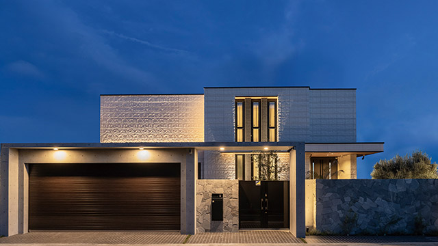 天然石のアクセント壁が迎える上質なもてなしの住まい