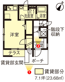 ■敷地面積:60.66m²(18.3坪) ■延床面積:96.89m² (29.3坪)1階:30.47m² (うち賃貸部分23.68m²) 2階:33.83m² 3階:32.59m² ■竣工年月:2012年3月 |