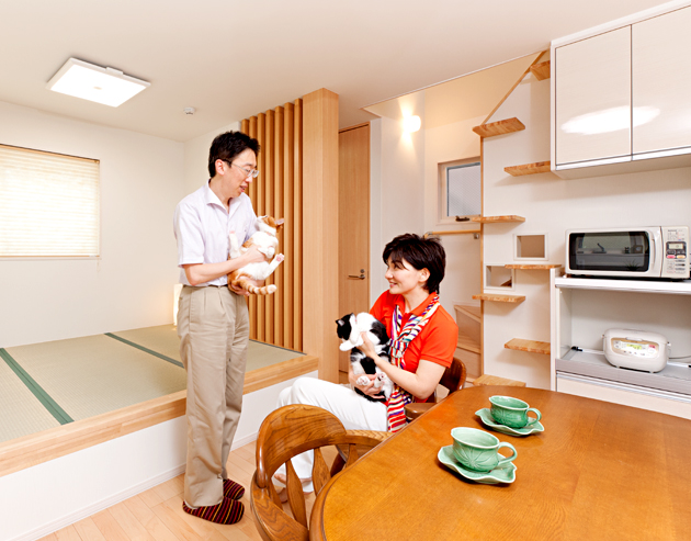 猫と一緒に暮らすための提案をたくさんしていただきました。傷の付きにくいフローリング、トイレのスペース、換気扇、キャットステップや壁のくぐり穴などです。廊下を極力なくし、限られたスペースを有効利用したプランにも満足しています。3階のホテルライクな間取りもダイワハウスさんに提案していただきました。使いやすい動線も含め、とても気に入っています!