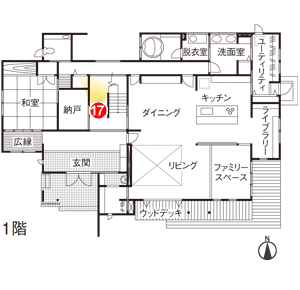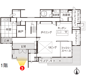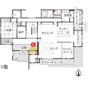 玄関とリビングの間に、着替えや手洗いができるスペースを