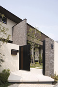 道路に面して大きな開口部があるN様邸。開放感を保ちながらも、行き交う人の視線を気にすることなく生活できるよう、ルーバーと塀を組み合わせて敷地を囲みました。バランスよく配置された植栽が、敷地の中からも外からも目を楽しませてくれます