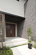 タイルをあしらって変化をもたせた外観は、重厚かつ上品な仕上がり