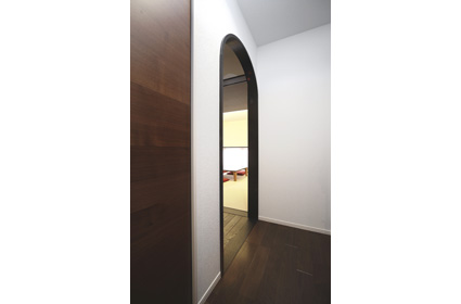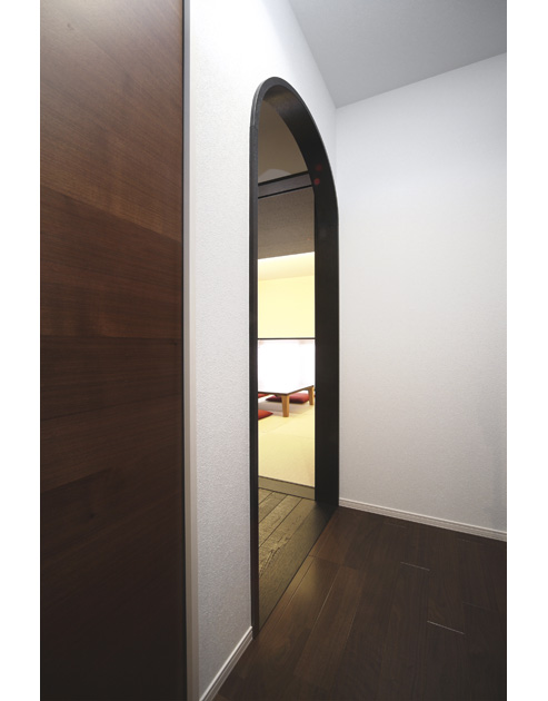 アーチ状の開口は和室への入り口。ほかの居室と趣が違うのは、お客様をお迎えする空間だからだそうです