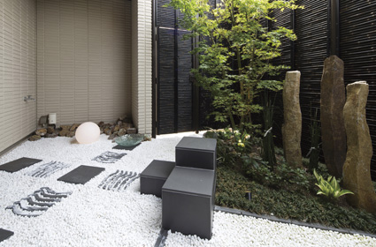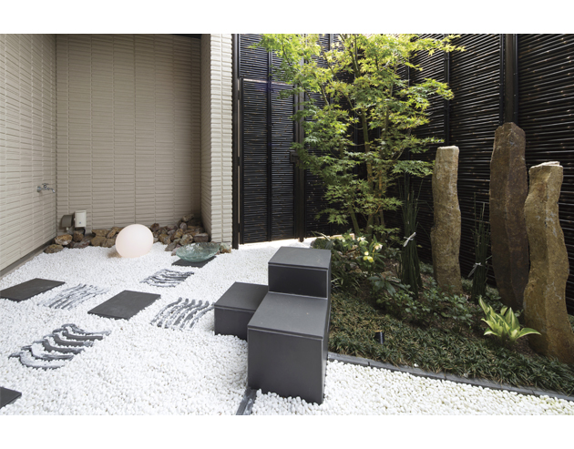 お住まいの裏手にある坪庭。浴室や廊下、階段越しに玄関からも眺めを楽しむことができます