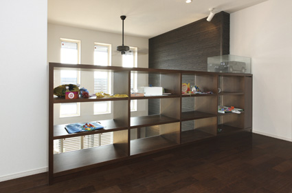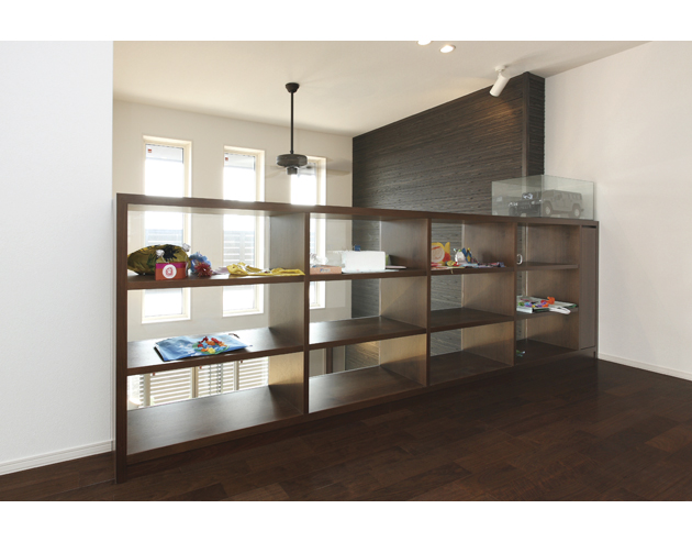 2階ホールには、お子さまの作品を飾る棚を設置