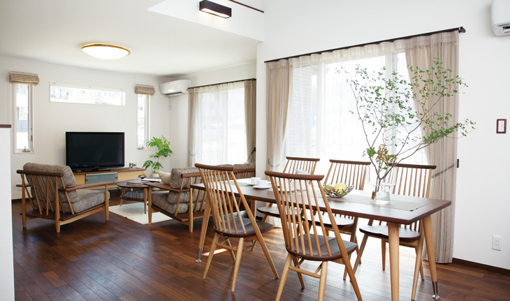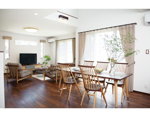 毎週末のにぎやかな打ち合わせは楽しいひと時でした。ご契約からご入居まで7か月という短期間でしたが、女性の営業担当が夫人やお嬢さまと打ち解け、時には携帯電話のメールをやり取りしながら家づくりを進めていきました。お手持ちの品を見せていただいて設計した収納スペース、2度塗りのオイル仕上げで質感を活かした無垢材の床など、設計から施工までの細やかな提案に、ご満足いただけたことをスタッフ一同喜んでいます。
