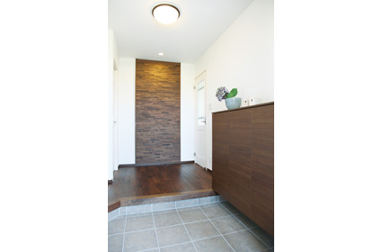 アクセントウォールが印象的な玄関