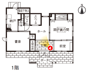Tさまの長年の夢である「お城を建てたい」という思いにどう応えるかをチーム一丸となって考えました。2階にLDK、3階に寝室や浴室を配置したので、1階は生活には必要がない空間です。用途のない1階をどう生かすかが最大のポイントで、打ち合わせを重ねました。玄関は家の顔なので、それを意識して設計し、玄関ホールの右側をしつらえに凝った遊び心のある空間に仕立てました。ご夫妻の思いが詰まった「お城」ができたと思います。