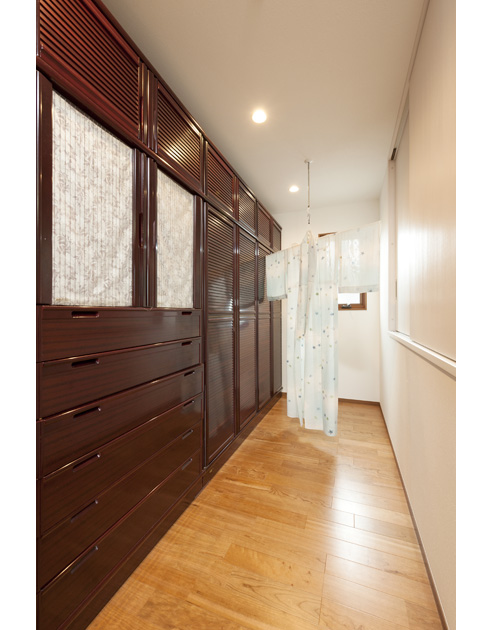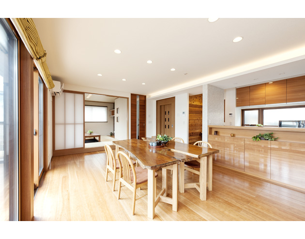 インテリアコーディネーターの石本さんの囲炉裏の間の提案が特に素晴らしかったですね。石本さんには照明やクロスなどもすべてコーディネートしていただいたことで、とても素敵な住まいになりました。適材適所に設けられた使いやすい収納もとても便利。片付けがしやすいおかげで、この家に住んでから物が散らからなくなりました。