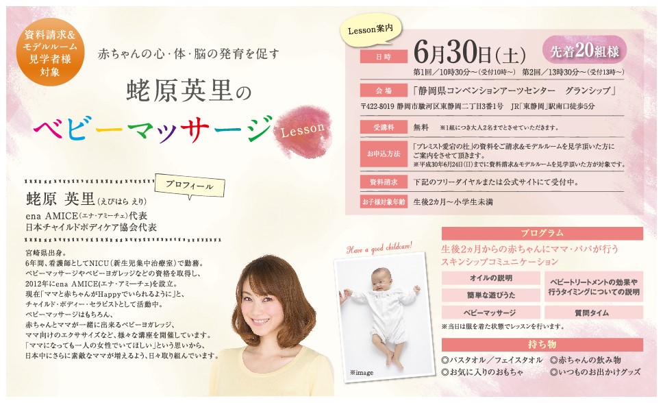 蛯原英里のベビーマッサージレッスン開催!【プレミスト愛宕の杜】