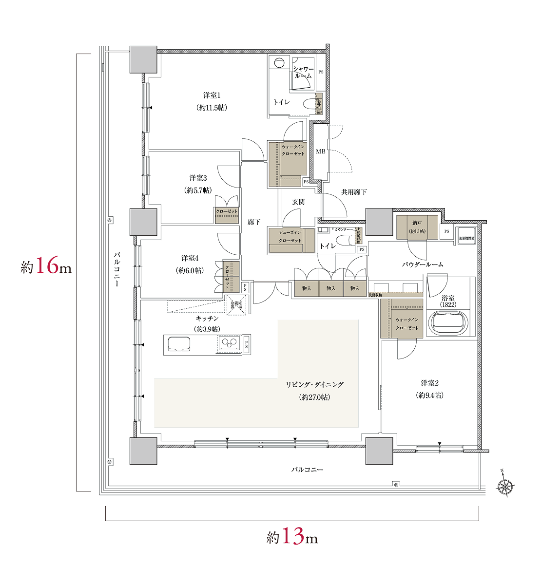 147.91m²(約44.74坪) - □バルコニー面積╱