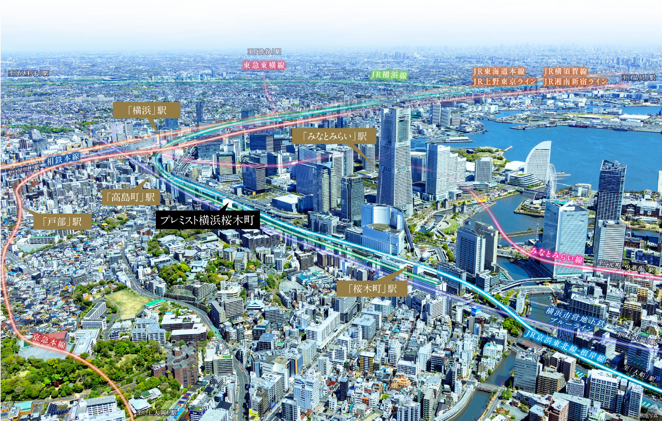 「桜木町」「みなとみらい」「横浜」「高島町」「戸部」の5駅が徒歩圏内。